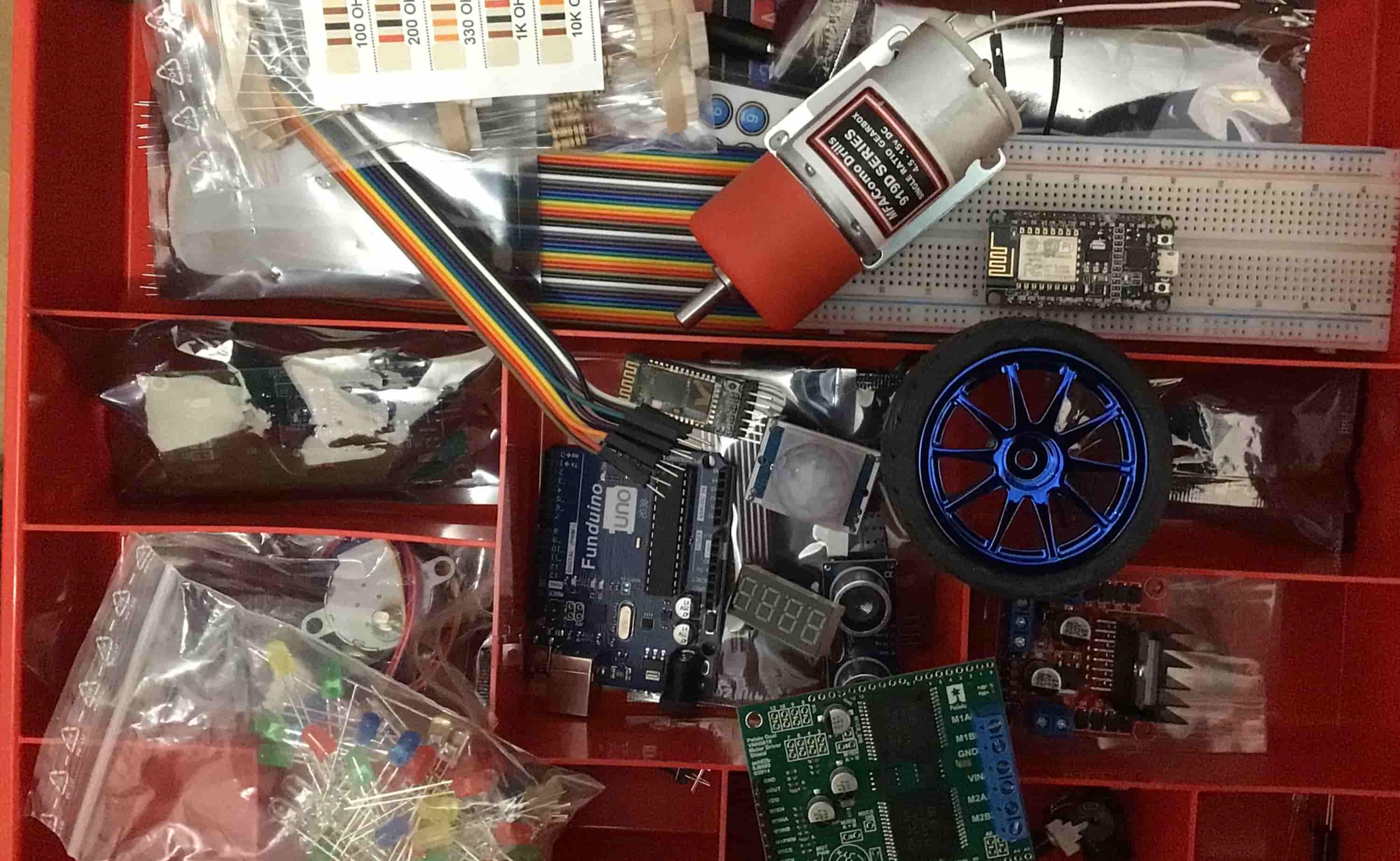 Unser Einstieg in das Projekt beginnt mit dem Kennenlernen der Arduino-Umgebung und erstellen einfacher Programme zum Steuern von Hardware wie Motoren, LEDs, Schalter, Sensoren, Anzeigedisplays sowie weiterer Elektronik.